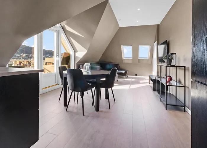 Set within a 5-minute drive of Xhibition, the 60 m^2 Penthouse Apartment In Bergen comprises a patio and a place for dining overlooking the mountain. Featuring a sunny patio, this 1-bedroom apartment is located right in the centre of the city.